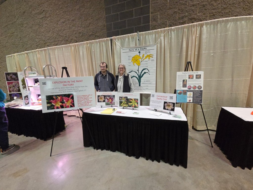 Hartford Flower Show: February 19-22, 2026: CDS will be exhibiting at the CT Federated Garden Club’s Hartford Flower Show at the Convention Center. See daylilies on the Storybook Gardens theme and get information and advice about daylilies from our members. Open for 4 days with lots of great exhibits and sales booths. Volunteers helping at our booth get free passes and parking. Contact Rebecca Nisley to volunteer.